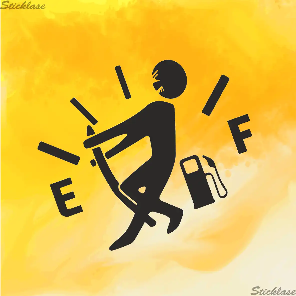Der Sticker zeigt eine Figur, die den Zeiger der Tankanzeige Richtung „voll“ zieht – ein echter Hingucker für alle, die Spaß an originellen Auto-Gadgets haben.